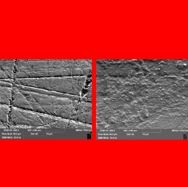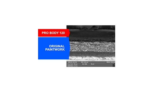 These measurements done under a Tescan® scanning electron microscope shows a sample of a car body with factory paint coated with our Diamond Pro Body 120 package.